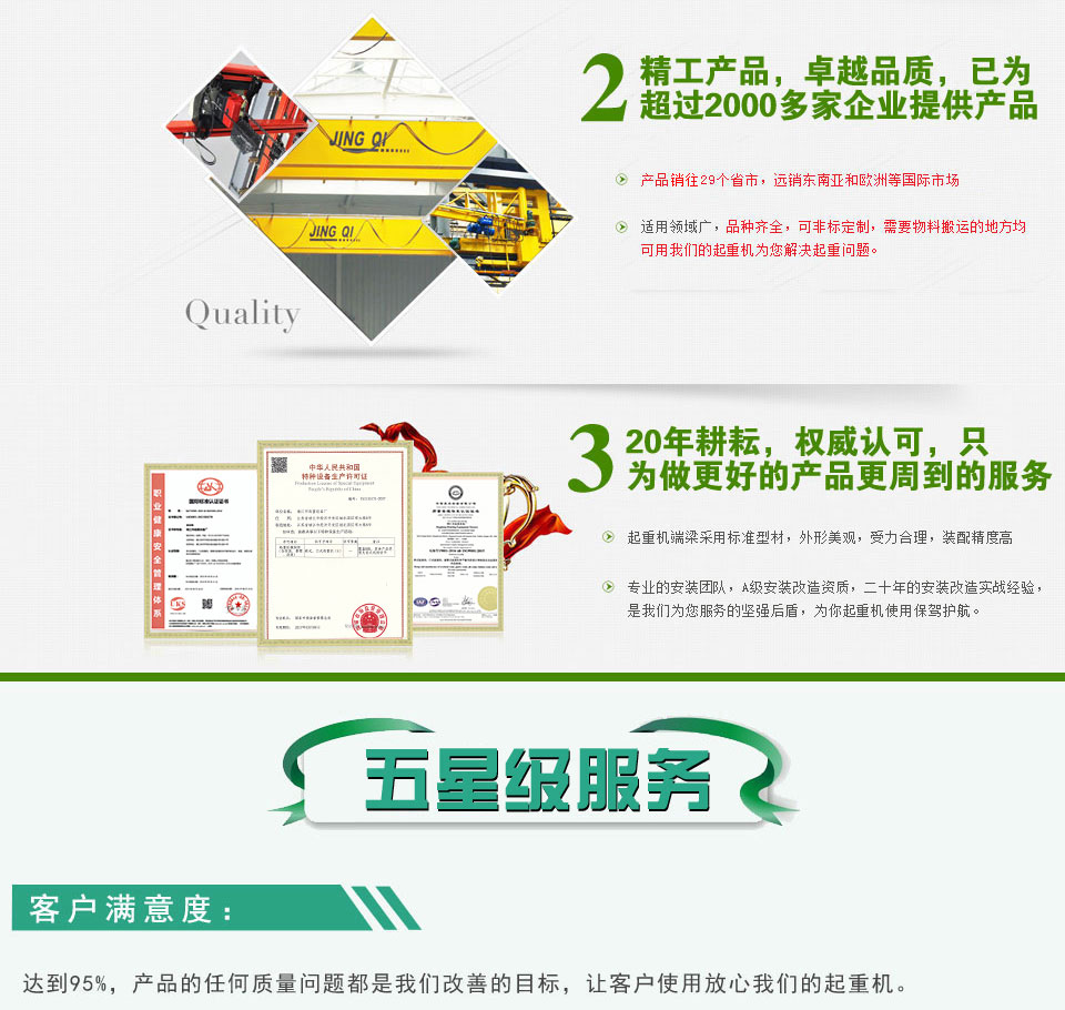 有需求才見專業(yè),有需求才見服務,靖江起重專業(yè)的技術(shù)團隊生產(chǎn)出來的起重機質(zhì)量非常好;產(chǎn)品性能優(yōu)良,質(zhì)量